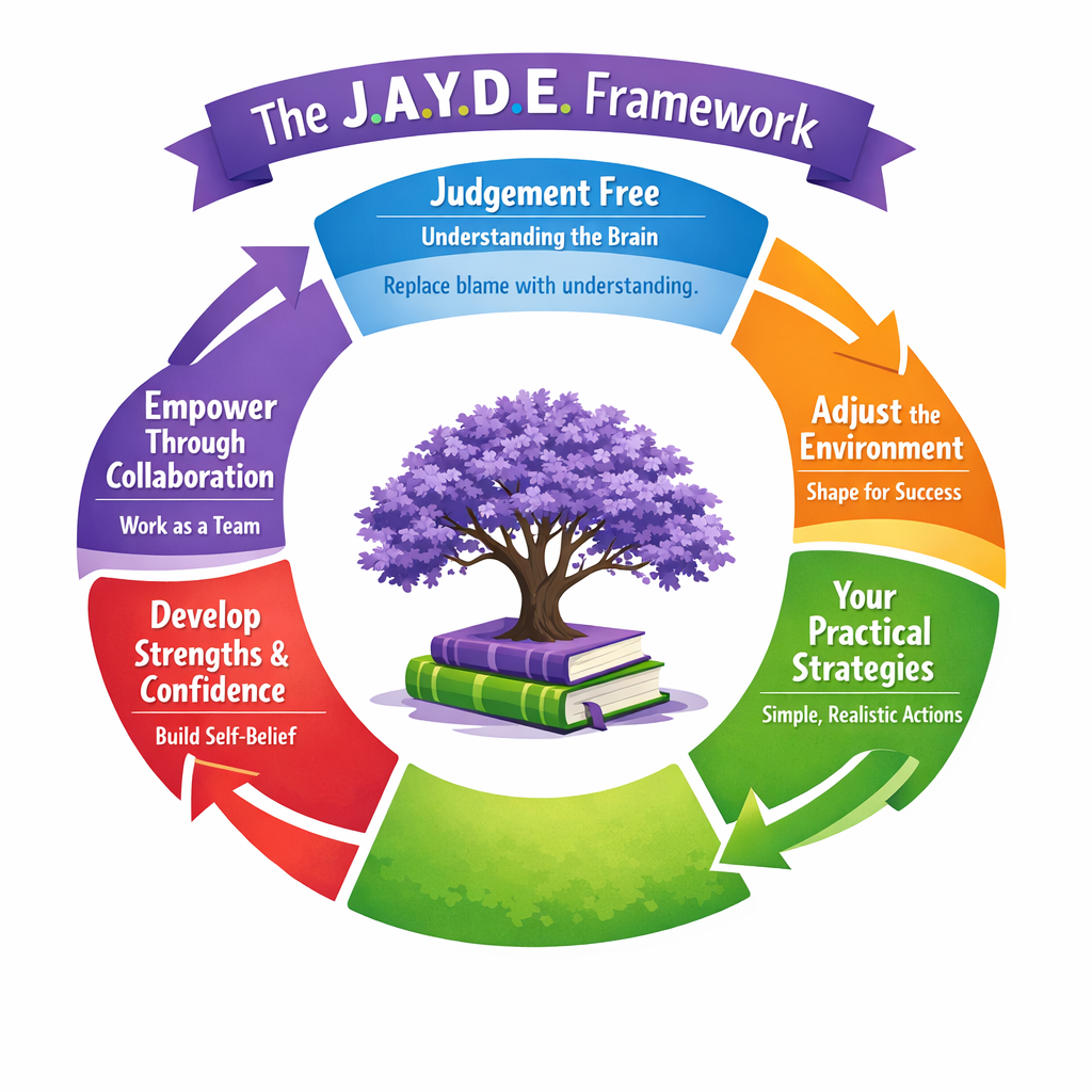 At Jacaranda Jayde, I meet you with understanding, not judgement. I help you make sense of the ADHD brain and turn that understanding into practical strategies that work in everyday life. I work alongside you – building support through collaboration – so you can move from overwhelm to confidence.